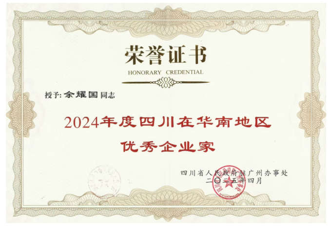 2025年4月11日,四川省人民政府驻广州办事处授予深圳市易通自动化设备有限公司董事长余耀国“2024年度四川在华南地区优秀企业家”称号。这一荣誉不仅是对一位企业家的褒奖,更是对易通贴片机坚守“中国智造”、打破国际技术垄断的肯定。